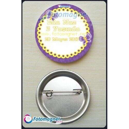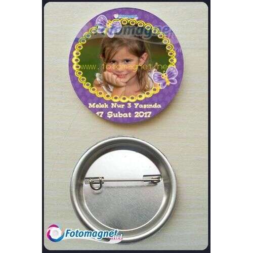Sevimli Kelebek Temalı Mor - Fotoğraflı - İğneli Buton Rozet