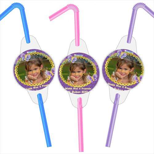 Sevimli Kelebek Temalı Mor - Fotoğraflı - Pipet