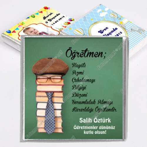 Çiçek Desenli Konsept - Kare - Çikolata - Sargı Etiketi
