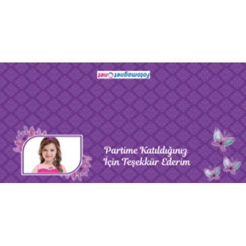 Mor Çiçek Temalı Fotoğraflı - Su Şişesi Etiketi
