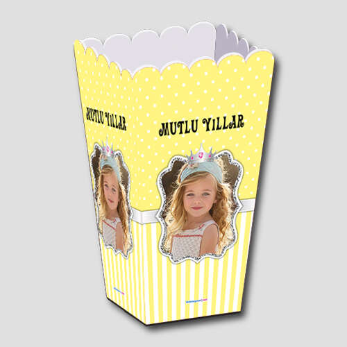 Sarı Gümüş Prenses Taçlı - Popcorn Kutusu