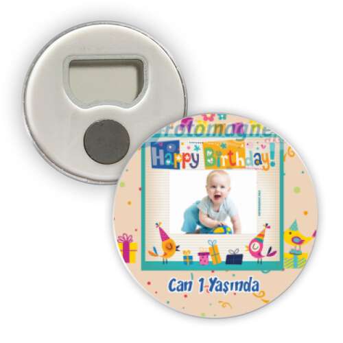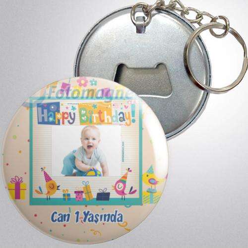 Happy Birthday Kuşlu - Fotoğraflı - Metal - Açacak - Anahtarlık