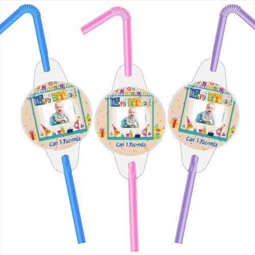 Happy Birthday Kuşlu - Fotoğraflı - Pipet