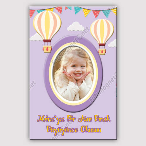 Uçan Balon Temalı Lila - Yatay - Magnet