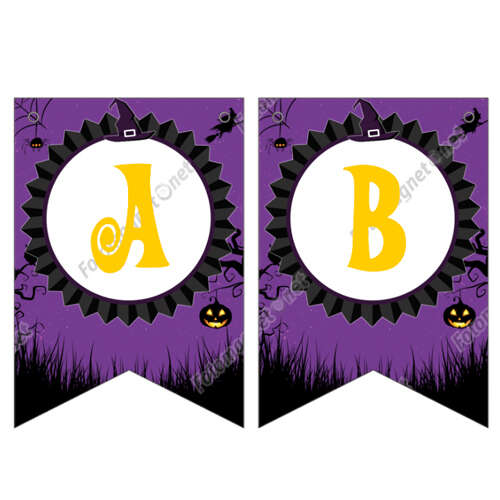 Cadılar Bayramı Temalı Mor - Banner - Flama - İkili