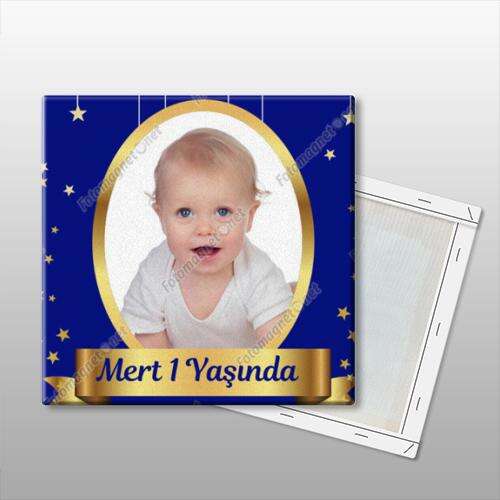 Lacivert Dore Yıldız Temalı - Kanvas Tablo - Kare