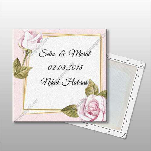 Pembe Gül Temalı - Nişan - Nikah - Fotoğrafsız - Kanvas Tablo