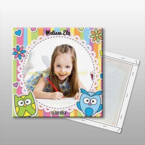 Baykuş Ailesi Temalı - Fotoğraflı - Kanvas Tablo
