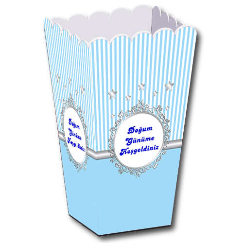 Mavi Gümüş Yıldızlı - Fotoğrafsız - Popcorn Kutusu