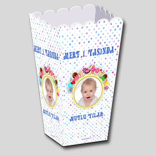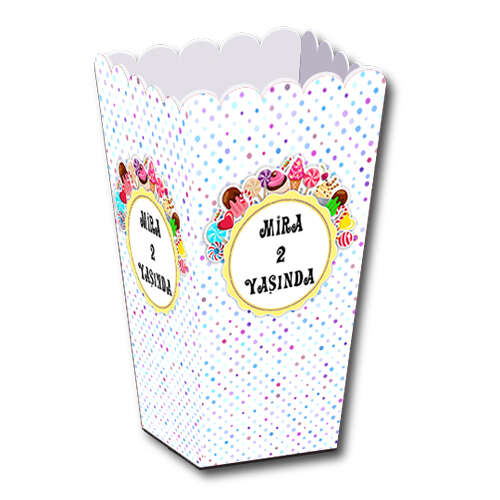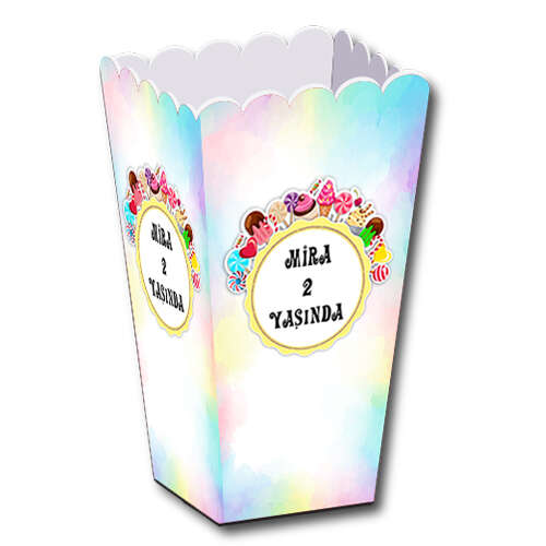 Şeker Temalı Renkli - Fotoğrafsız - Popcorn Kutusu