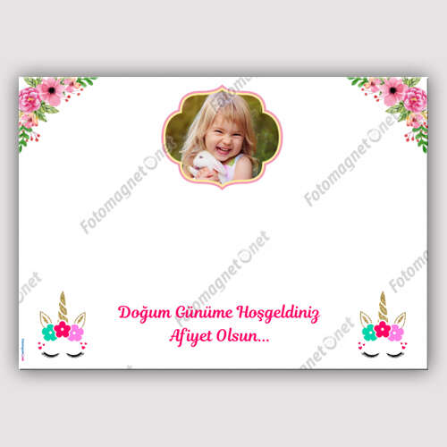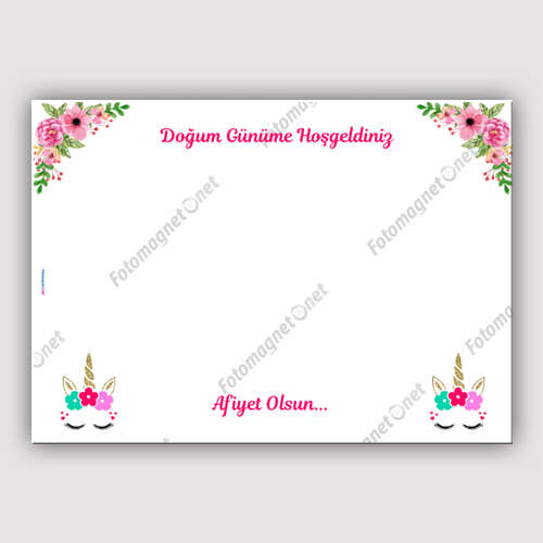 Unicorn Temalı Çiçekli - Fotoğrafsız - Amerikan Servis