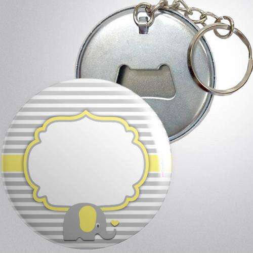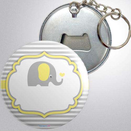 Sarı Gri Sevimli Fil Temalı - Fotoğraflı - Metal - Açacak - Anahtarlık