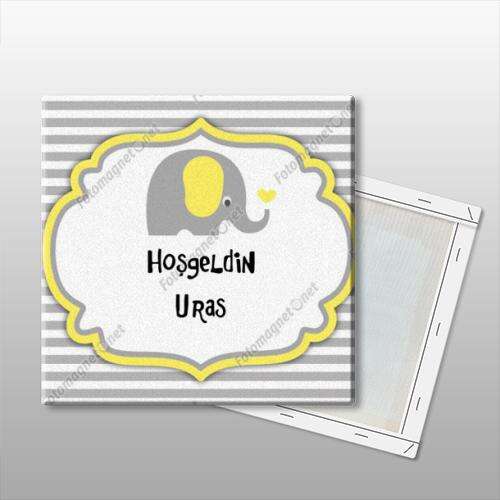 Sarı Gri Sevimli Fil Temalı - Kanvas Tablo