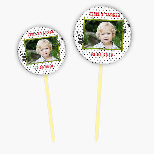 Panda Temalı Siyah Beyaz Puantiyeli - Kürdan Süs
