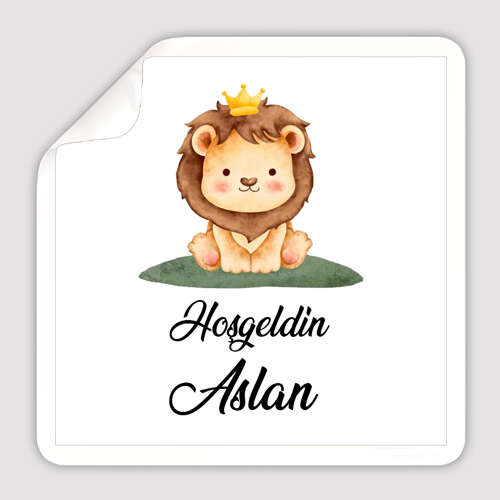 Hoş Geldin Bebek - Aslan Temalı - Kare - Etiket -