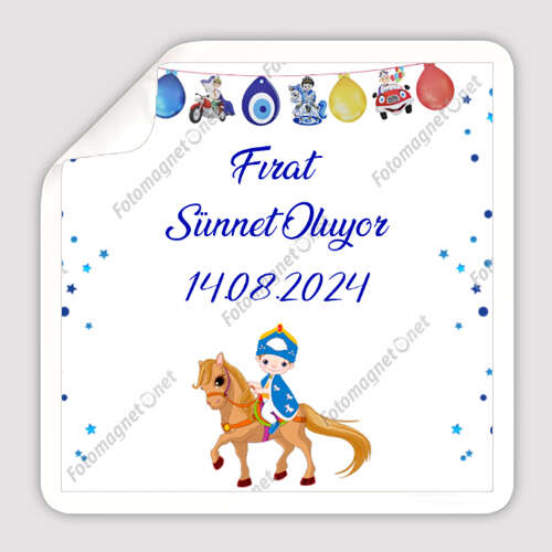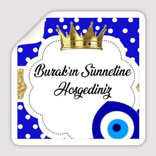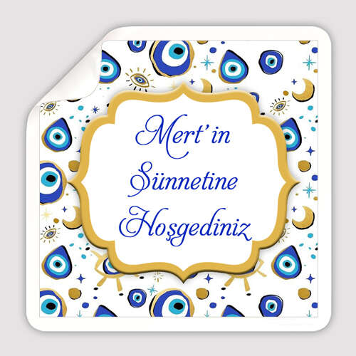 Sünnet Temalı Nazar Boncuklu - Kare - Etiket - 1