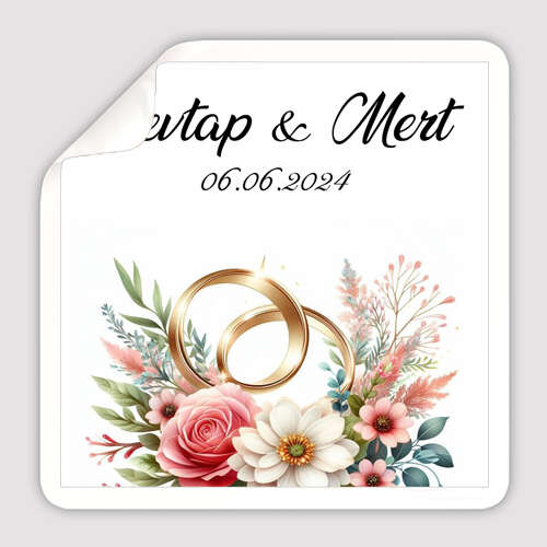 Düğün Nişan Temalı - Kare - Etiket - 43