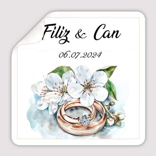 Düğün Nişan Temalı - Kare - Etiket - 34