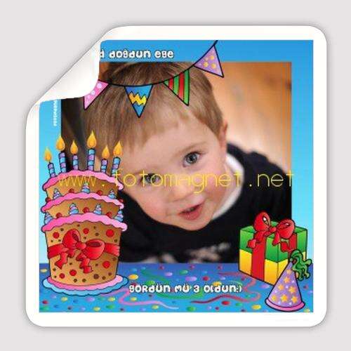 Doğum Günü - Kare - Sticker - Etiket - Pastalı