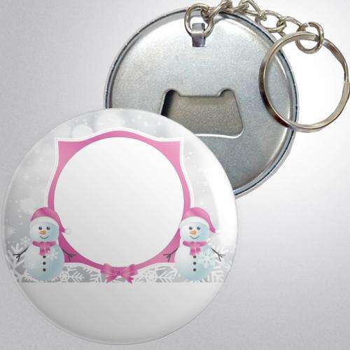 Kardan Adam Temalı Pembe Gümüş - Metal - Açacak - Anahtarlık