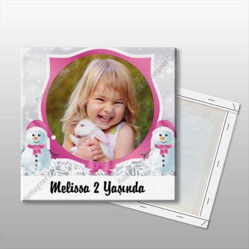 Kardan Adam Temalı Pembe Gümüş - Kanvas Tablo