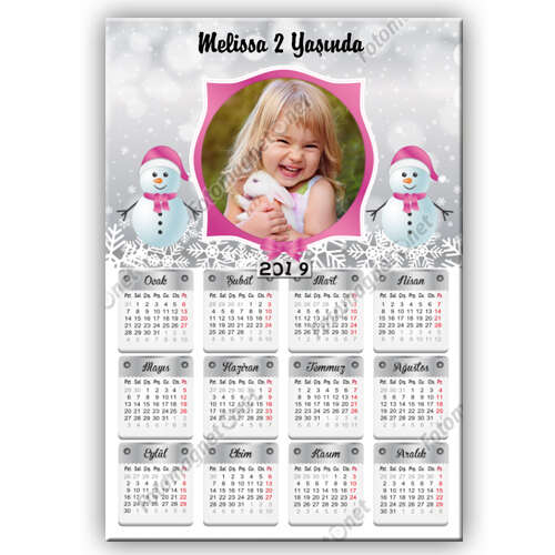Kardan Adam Temalı Pembe Gümüş 2024 Takvim Magnet