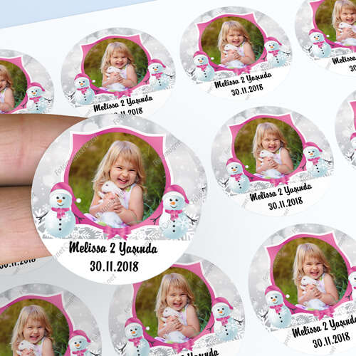 Kardan Adam Temalı Pembe Gümüş - Şişe Etiketi