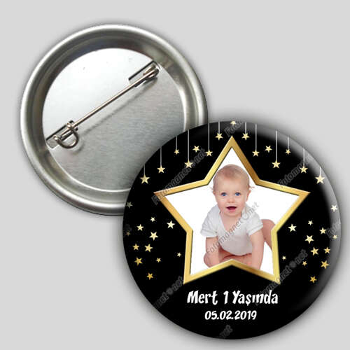 Yıldız Çerçeveli Siyah Dore - İğneli Buton Rozet