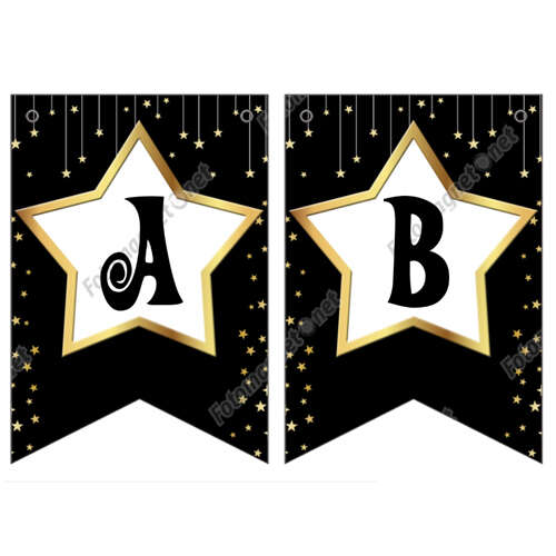 Yıldız Çerçeveli Siyah Dore - Banner - Flama - İkili