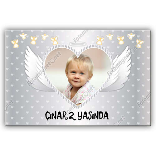 Melek Temalı Gümüş Gri - Yatay - Magnet