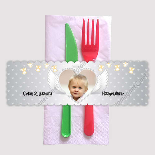 Melek Temalı Gümüş Gri - Peçete Sargısı