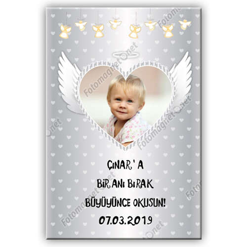 Melek Temalı Gümüş Gri - Magnet - Açacak